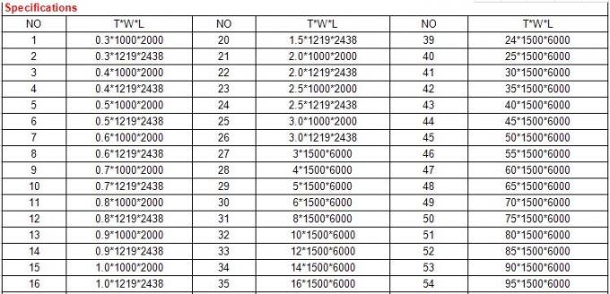 | Chiều dài: 2000mm / 2438mm / 3000mm / 6000mm hoặc Tùy chỉnh | Độ dày: 0.3mm-200mm, 3.0mm-12.0mm hoặc Tùy chỉnh |