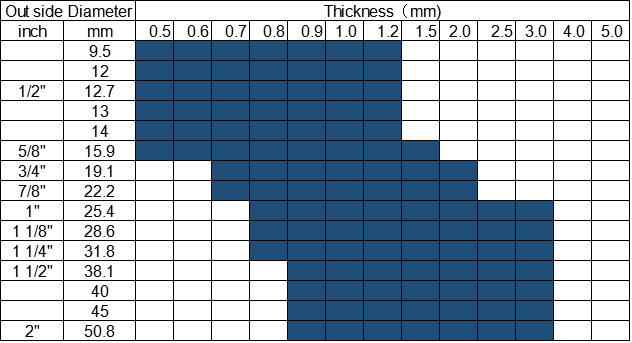 | Đường kính ngoài | 9.50mm ~ 219.08mm | Tiêu chuẩn | ASTM A269 |